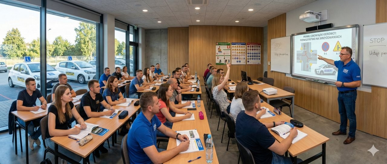 Szkolenie na prawo jazdy kat. B składa się z dwóch głównych bloków: części teoretycznej (min. 30 godzin lekcyjnych) oraz praktycznej (min. 30 godzin zegarowych). Kurs obejmuje wykłady z przepisów ruchu drogowego, zajęcia z pierwszej pomocy, naukę jazdy na placu manewrowym oraz w ruchu miejskim.
